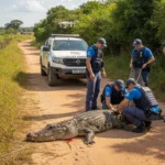 Jacaré ferido é resgatado após atropelamento em Bernardino de Campos
