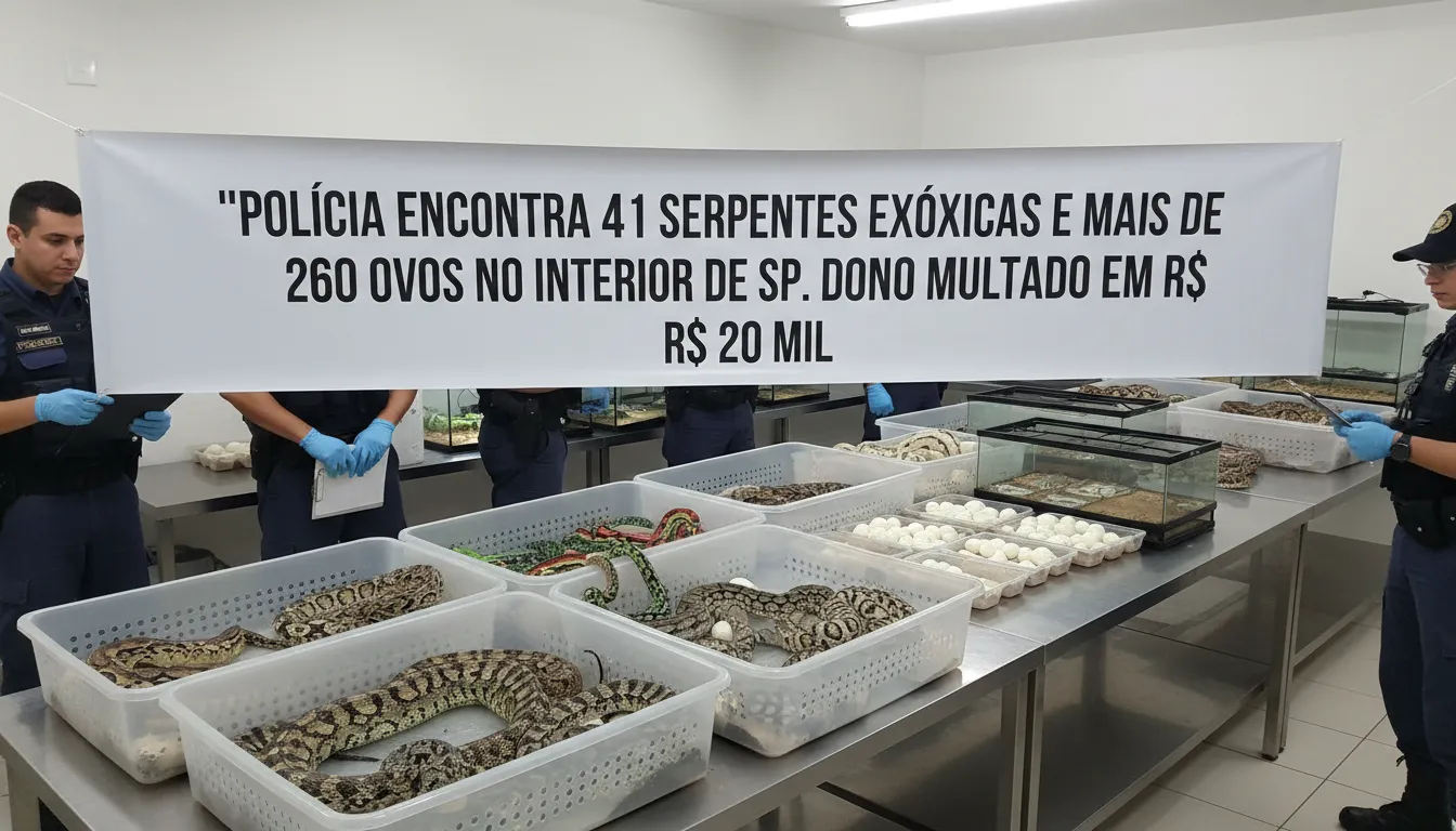 Em Assis, interior de São Paulo, a Polícia Militar Ambiental encontrou 41 cobras exóticas e 264 ovos da espécie corn snake, também conhecida como cobra-do-milho. A operação resultou na aplicação de uma multa de R$ 20,4 mil ao responsável, que mantinha os animais em cativeiro sem autorização.