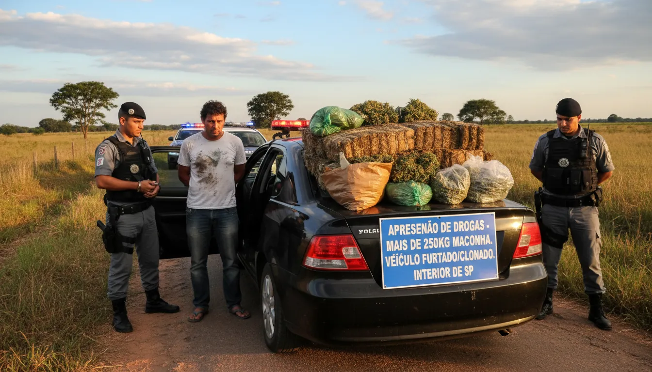 O homem foi autuado em flagrante e responderá por tráfico de drogas, além de furto ou receptação do veículo. A operação, que ocorreu no entroncamento das rodovias Transbrasiliana (BR-153) e Comandante João Ribeiro de Barros (SP-294), reforça o combate ao tráfico e ao uso de veículos clonados na região.