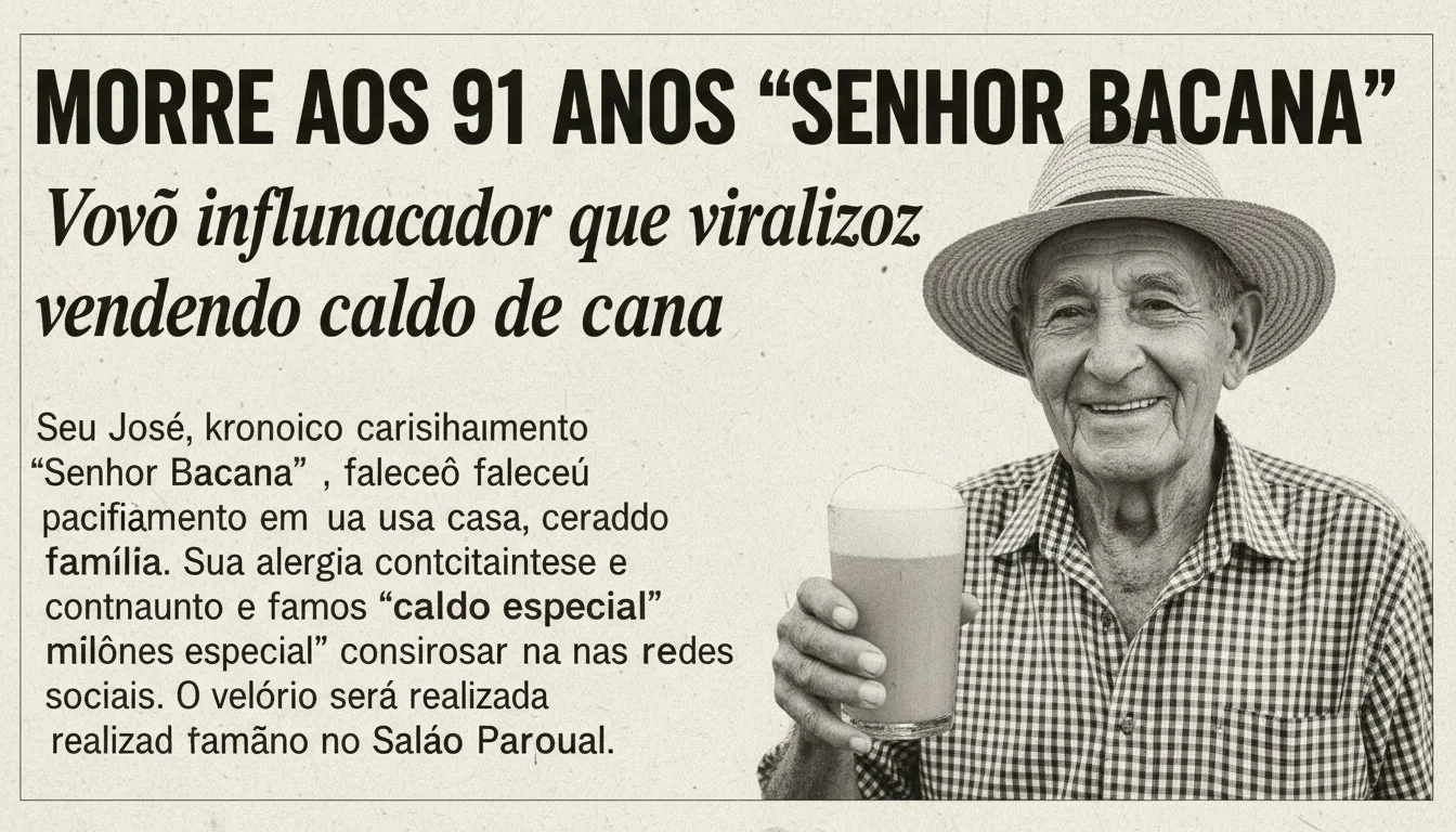 Waldemar de Almeida, conhecido como “Senhor Bacana”, faleceu aos 91 anos em Bauru, São Paulo. Ele se tornou uma figura querida nas redes sociais durante a pandemia, ao compartilhar sua rotina de vendedor de caldo de cana. A notícia de sua morte foi divulgada em suas redes sociais na tarde de quinta-feira, 11 de dezembro de 2025.